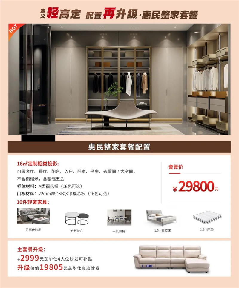 “定义轻高定”的理念,不是盲目追求当前“高端定制”热度,而是基于大众消费水平及生活常态化需求,进行“配置再升级”,以更实惠的价格,买到更优质的产品,装出更理想的效果。