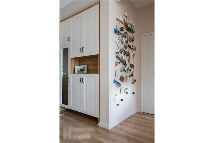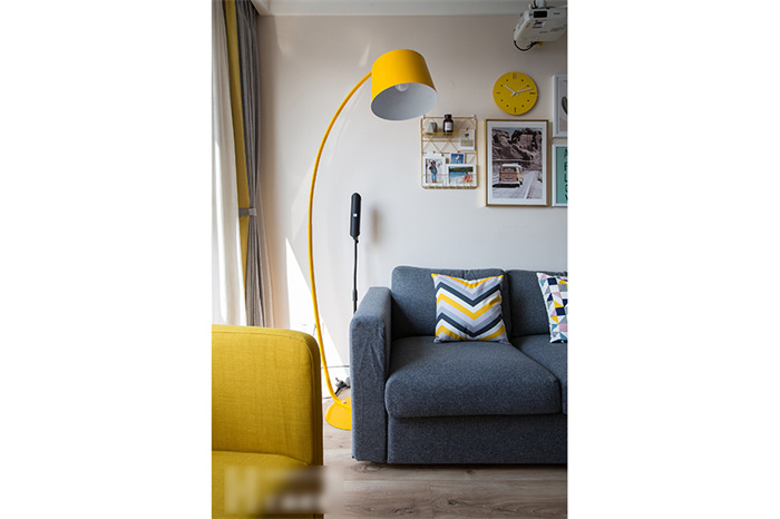 进入客厅,首先映入眼帘是简约的白色立柜和一组照片墙的设计。每一张照片仿佛都在述说一个故事,记录这个95后小夫妻每个难忘的瞬间。365WMSPORTS定制的芬兰白入户柜和木门在照片墙的陪衬下温馨感十足。撞色的沙发,简洁明快的亮黄色搭配深灰色立体感拉满,驼色墙面上的艺术画交错搭配,透露着一丝文艺气息。