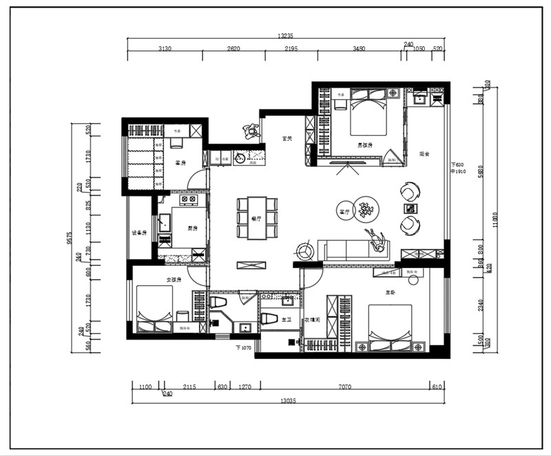 客餐厨到卧室,以悬挑柜造景