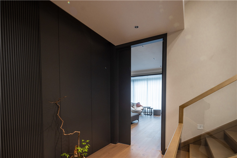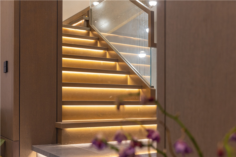 没有采用繁复的装饰物来营造轻奢氛围,更多利用设计与灯光去巧妙体现家居“奢”的氛围,体现精简的设计理念。