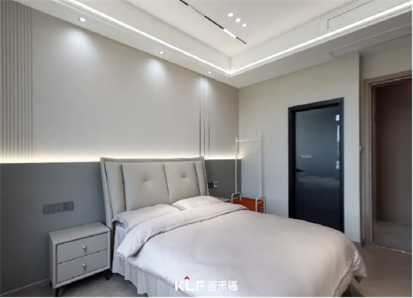 沿用了暖咖色的床头背景墙设计