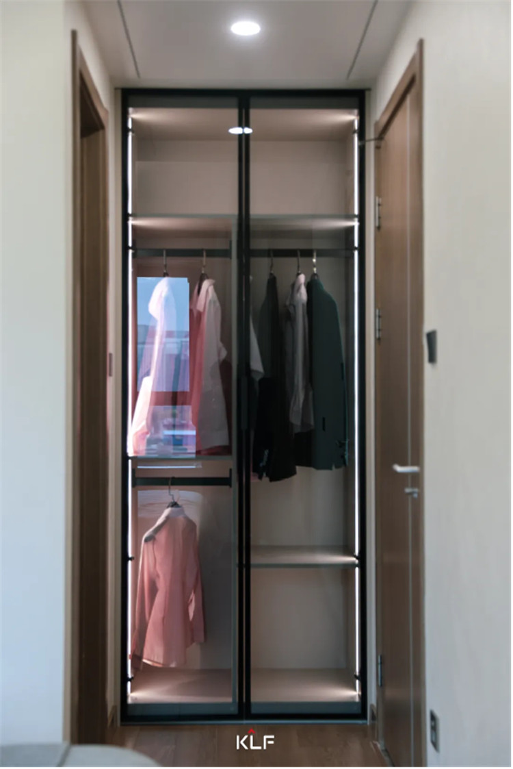 简约的配色与简单的衣柜设计,一柜到顶式增加储物能力、半铣型拉手简洁实用,其中跳色粉套格设计既时尚又具有一番创意,为舒适的空间带去一丝趣味。