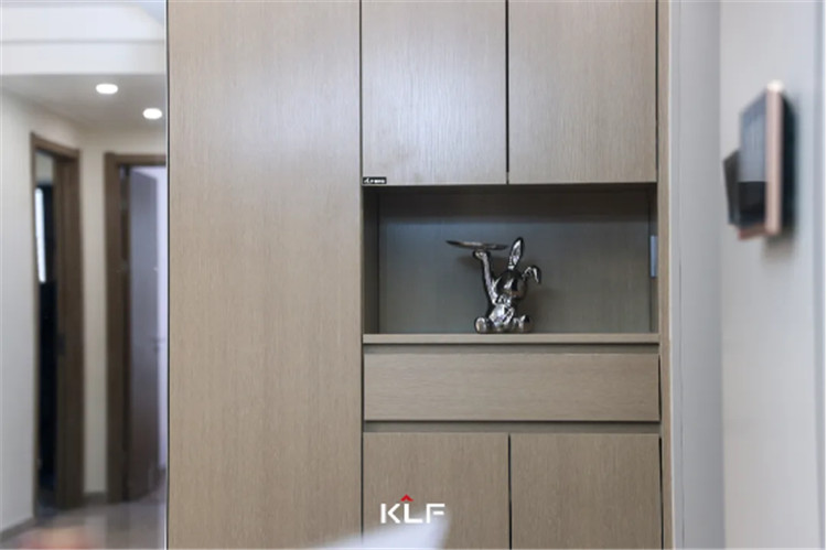 简约玄关柜设计,在有限的空间内将柜子的功能发挥到了理想状态,拥有放鞋区、挂衣区、储物区、装饰区……满足多种功能的同时,整体不显得繁杂,实用又美观。