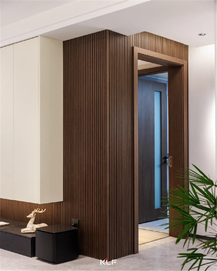 木门则采用特调的烤漆调色,与纳科榆木的墙、柜形成呼应,全屋设计浑然天成,美在不言之中。