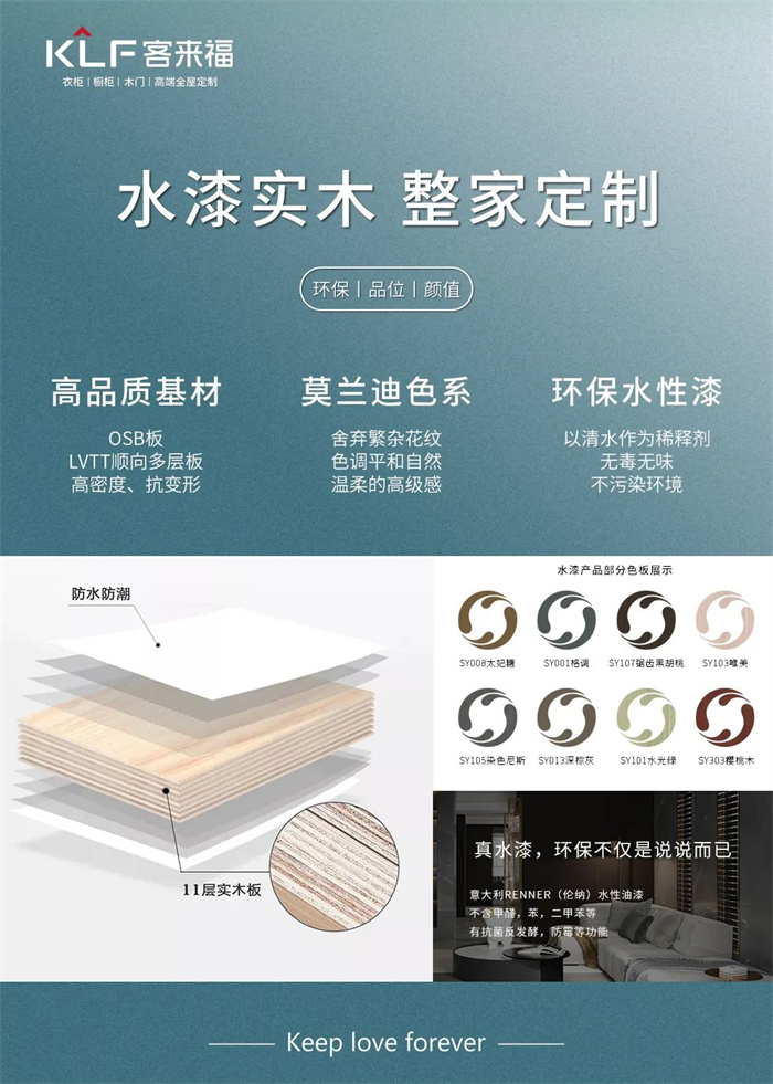 墨奈系列采用水漆工艺,住得越久越能感受它的“物超所值”。像惹人头疼的家务活,水性漆产品就可以直接用水清洗,干净高效。此外,水性漆产品历经岁月的洗礼,色泽愈加亮丽明显,不会因为光照、冷热、风雨轻易受到损害,减少您的后续维护烦恼。