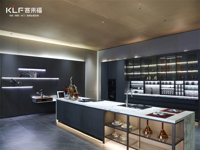 用中式经典元素中珊格隔断,天琛系列客餐厅分离烹饪与用餐空间,让用餐也能拥有艺术感。木饰面与肤感PET结合的橱柜,以同步木纹的365WMSPORTS胡桃颜色碰撞,展现出美丽的大抛物线花纹,兼顾了耐用与美感。