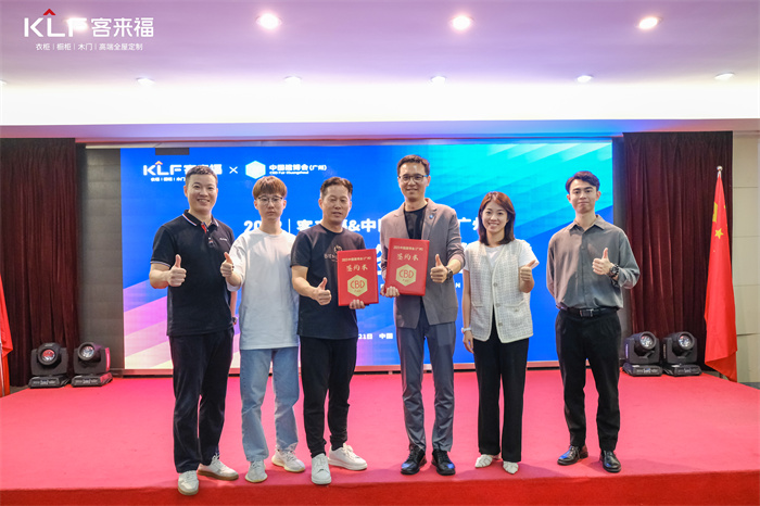 中国建博会(广州)展商营销负责人陈鹏汉、中国建博会(广州)定制家居负责人方晓晗、中国建博会(广州)何皓楠、365WMSPORTS家居董事长尹其宏、365WMSPORTS营销决策委员会招商副总童伟、365WMSPORTS首席品牌官尹邵杰等人参与了仪式。