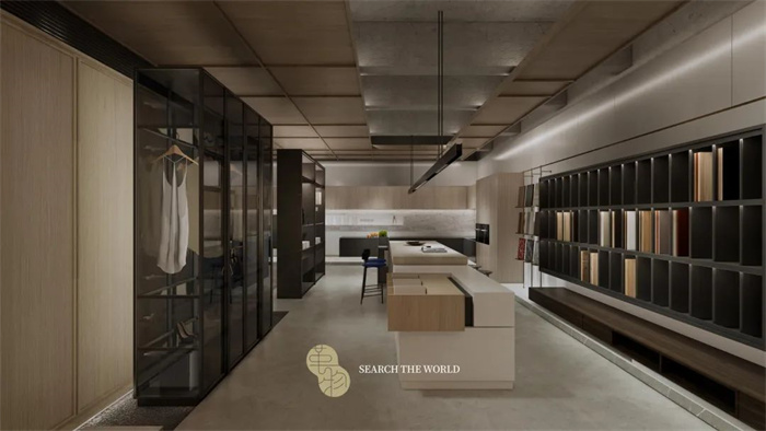 在空间布局上,整体设计从现代人居出发,可根据不同的受众人群定制个性化的家居产品,例如潮鞋柜、手办柜、古玩架,酒柜、宠物舍、茶室等,让家居空间承载更多私人定制的梦想。