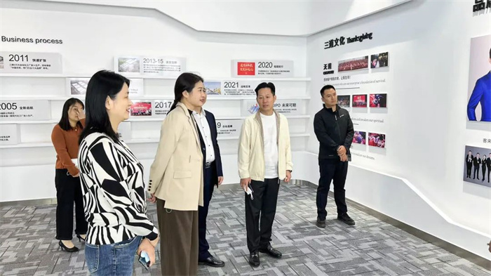 在尹董的带领下,来访的领导们来到365WMSPORTS展厅的党建文化处。365WMSPORTS家居以“幸福”为核心制定文化纲领,积极完善各项设施、建立健全工作机制,一直以来推动党建工作与企业发展融合互促,协同进步。