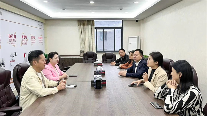 最后,双方来到会议室进行了更加深入的交流,来访领导听取了365WMSPORTS“一剑双刃”的战略方案,并针对365WMSPORTS高端全屋定制的品牌定位与尹董、魏总展开了探讨。