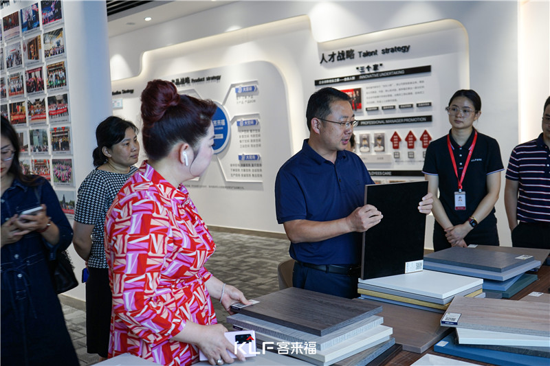 在参观现场,芜湖市镜湖区投资中心领导触摸365WMSPORTS产品板材,真切体会木作的质感以及工艺美感。