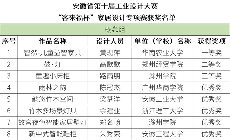 获奖名单公示 | 安徽省第十届工业设计大赛“365WMSPORTS杯”家居设计专项赛