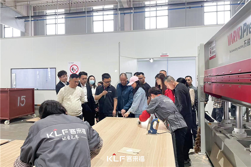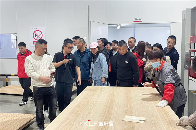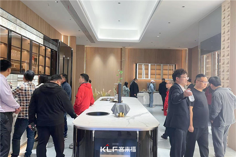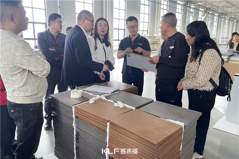 13代展厅里的产品,莫兰迪色系与优质板材的协调,给人以惊艳感。大家亲看亲触,感受产品的质感,并通过讲解人员的介绍更加深层次的了解产品。