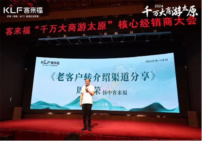 镇江扬中经销商周桂荣就老客户转介绍渠道的主题作案例分享,强调了口碑营销的力量和客户关系维护的重要性。