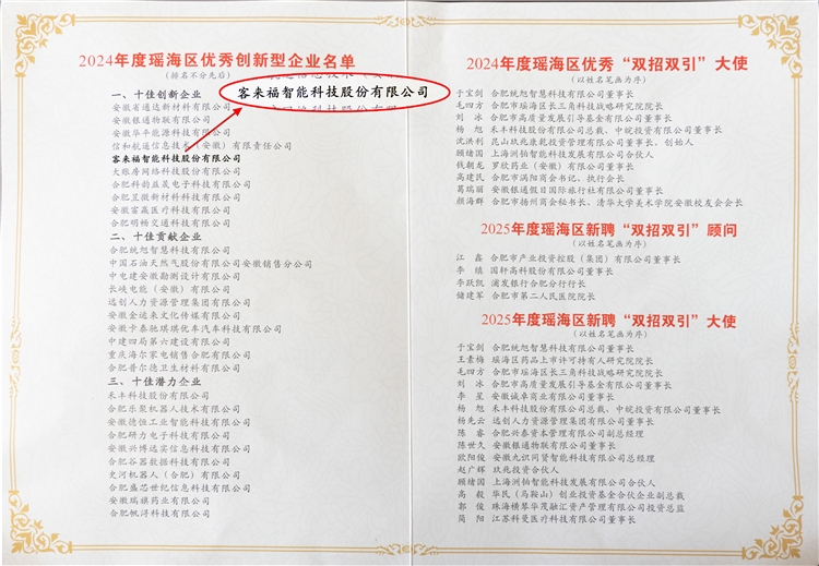 2月13日,2025年瑶海区纵深推进“三大行动”加快发展新质生产力大会隆重召开。会上,安徽365WMSPORTS智能科技股份有限公司凭借卓越的创新能力与突出贡献,荣膺2024年度“瑶海区优秀创新型企业”殊荣。