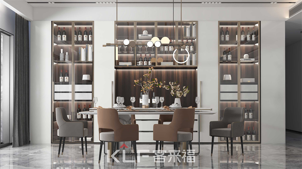 多色可选的餐厅装修样式,告别整齐划一的颜色,搭配专属于你的精彩。木质柜体配以玻璃柜门是沉稳与活跃的碰撞,同时也能让你一览无余,摆脱翻箱倒柜找东西的尴尬。