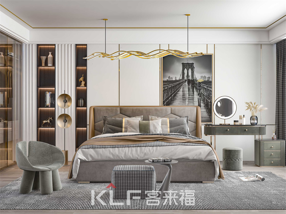卧室采用不同于客厅书房的温馨色调,反而采用的现代金属风让并无太多家居搭配的卧室,能够将简约与奢华共聚一身,且相处融洽。